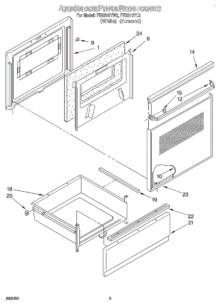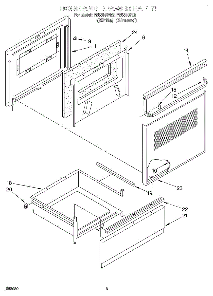 Parts for Roper FES310YW2: 03 - Door And Drawer Parts