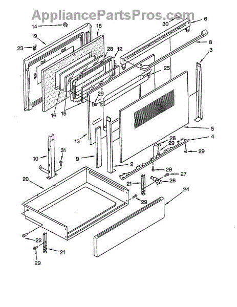 The Inner Door Glass is an OEM replacement part Whirlpool ranges. It is a clear glass panel located inside the range door that helps retain heat and allows for viewing of the cooking surface. As a barrier retaining heat, the door glass plays an important role in the range's cooking efficiency. The glass measures approximately 18 1/4 x 12 3/4 inches.