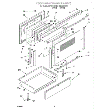 The Inner Door Glass is an OEM replacement part Whirlpool ranges. It is a clear glass panel located inside the range door that helps retain heat and allows for viewing of the cooking surface. As a barrier retaining heat, the door glass plays an important role in the range's cooking efficiency. The glass measures approximately 18 1/4 x 12 3/4 inches.