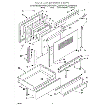 Parts for Kitchenaid KERC607HBS5: 02 - Door And Drawer Parts