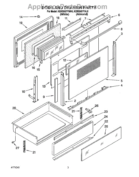 Parts for Kitchenaid KERS507YWH0: 03 - Door And Drawer Parts