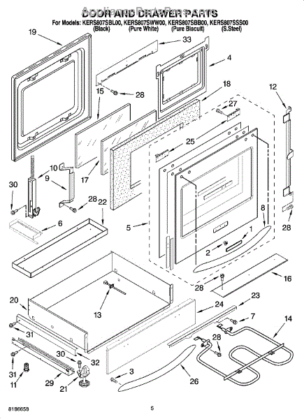 Parts for Kitchenaid KERS807SBL00: 04 - Door And Drawer Parts