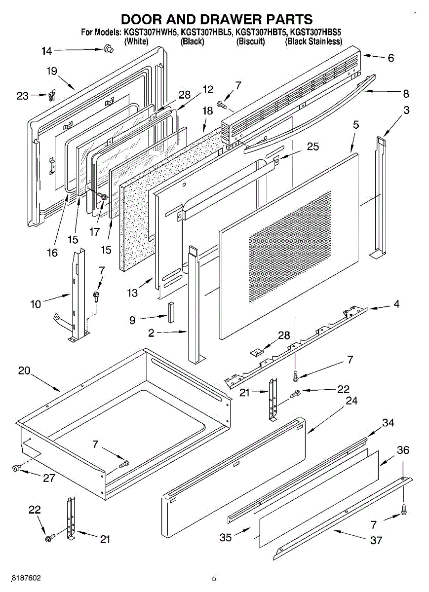 Parts for Kitchenaid KGST307HWH5: 04 - Door And Drawer Parts