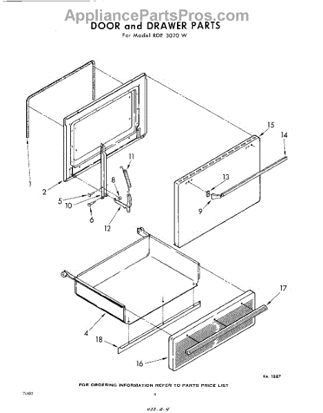 Parts for Whirlpool RDE3020W: 04 - Door And Drawer Parts