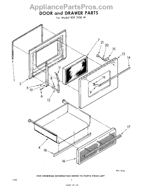 Parts for Whirlpool RDE3100W: 04 - Door And Drawer Parts
