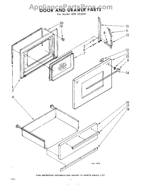 Parts for Whirlpool RDE3230W: 04 - Door And Drawer Parts
