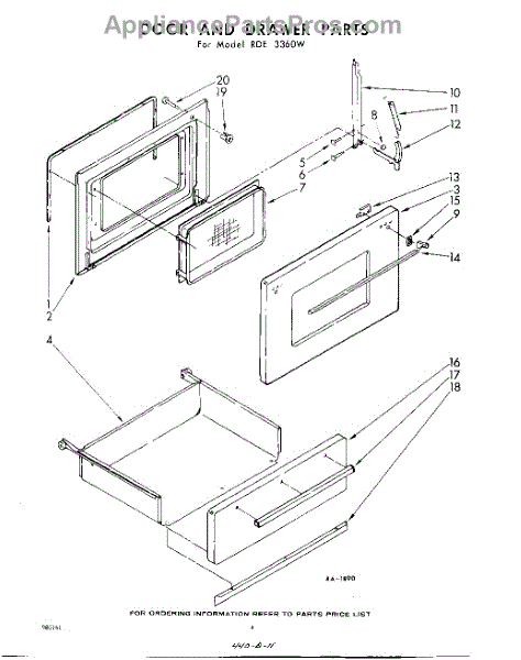 Parts for Whirlpool RDE3360W: 04 - Door And Drawer Parts