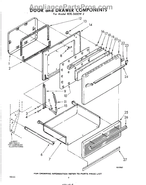 Parts for Whirlpool RDE3600W2: 08 - Door And Drawer Parts