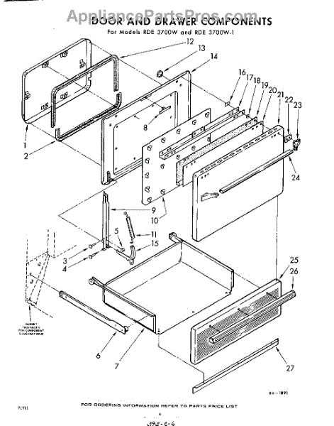 Parts for Whirlpool RDE3700W: 06 - Door And Drawer Parts