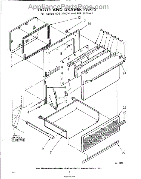 Parts for Whirlpool RDE3900W1: 06 - Door And Drawer Parts