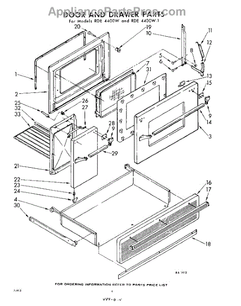 Parts for Whirlpool RDE4400W0: 04 - Door And Drawer Parts