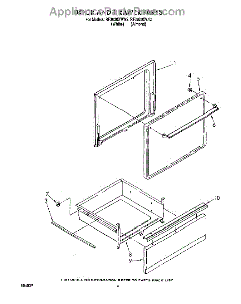Parts for Whirlpool RF3020XVW2: 04 - Door And Drawer Parts