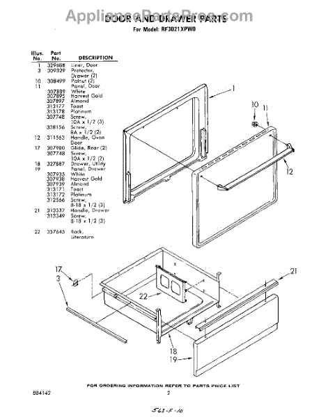 Parts for Whirlpool RF3021XPW0: 02 - Door An Drawer Parts