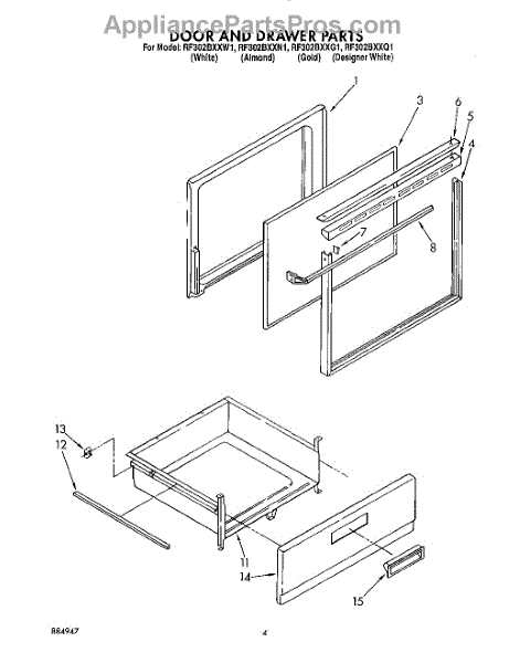 Parts for Whirlpool RF302BXXQ1: 04 - Door And Drawer Parts