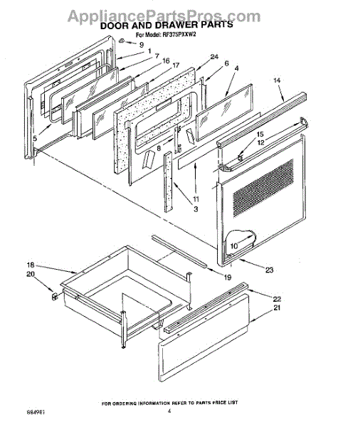 Parts for Whirlpool RF375PXXW2: 04 - Door And Drawer Parts
