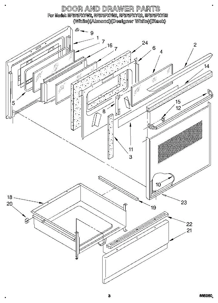 Parts for Whirlpool RF375PXYN2: 02 - Door And Drawer Parts