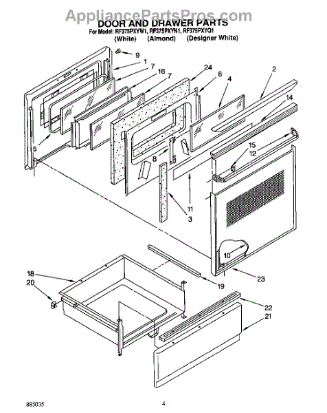 Parts for Whirlpool RF375PXYW1: 03 - Door And Drawer Parts