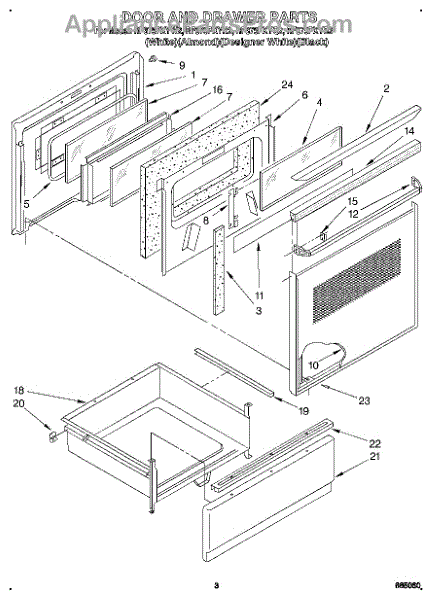 Parts for Whirlpool RF375PXYW2: 02 - Door And Drawer Parts