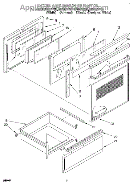 Parts for Whirlpool RF396PXYW3: 03 - Door And Drawer Parts