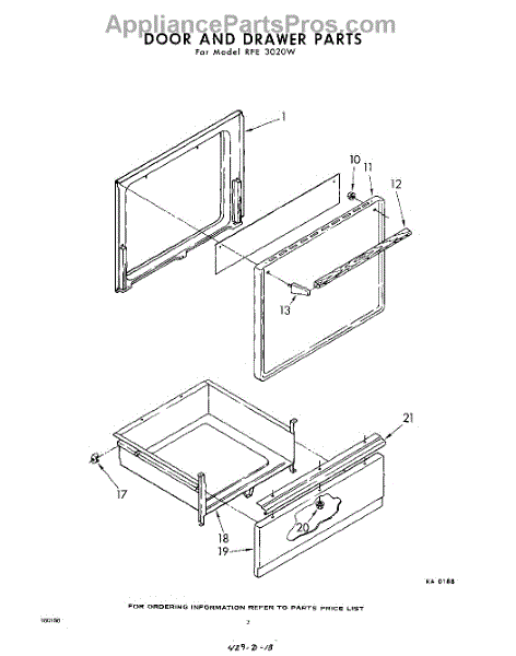 Parts for Whirlpool RFE3020W: 02 - Door And Drawer Parts