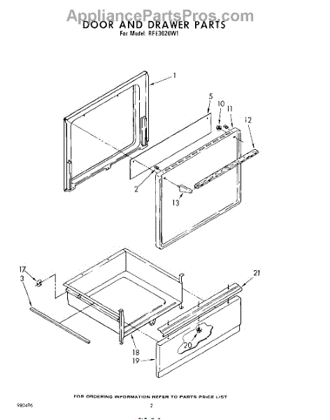 Parts for Whirlpool RFE3020W1: 02 - Door And Drawer Parts