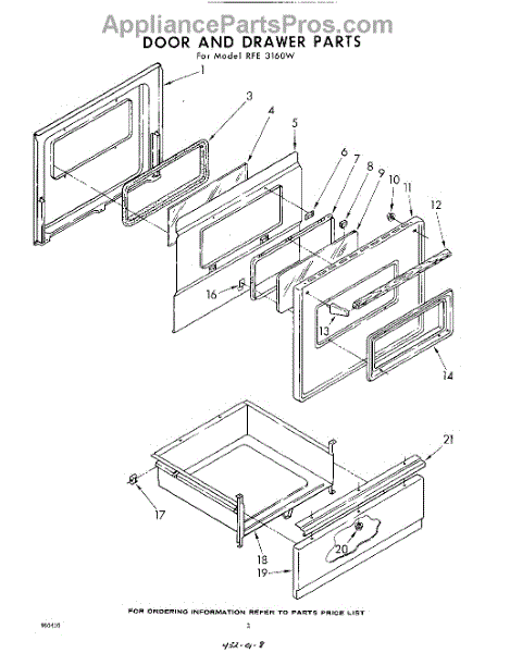 Parts for Whirlpool RFE3160W: 02 - Door And Drawer Parts
