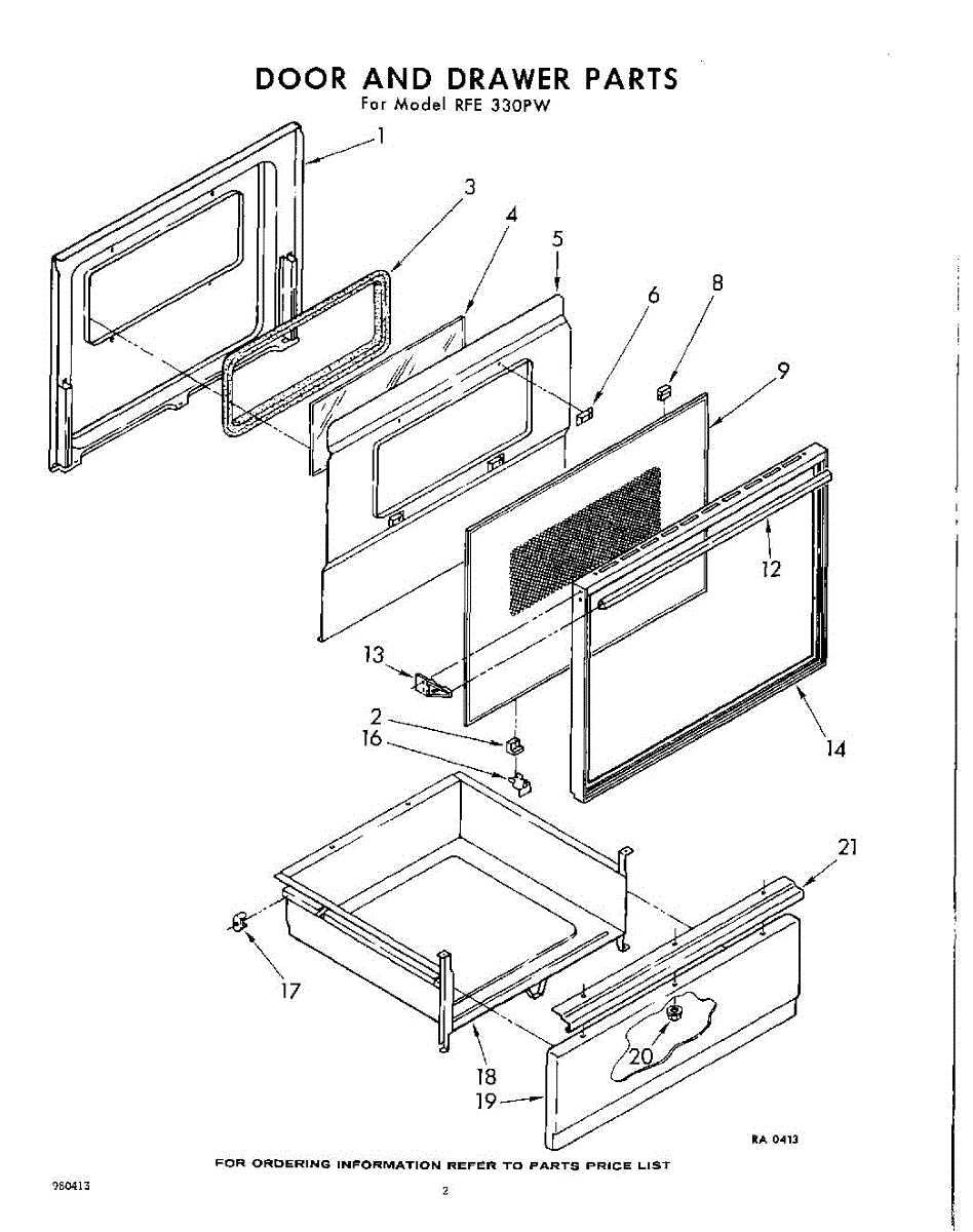 Parts for Whirlpool RFE330PW: 02 - Door And Drawer Parts