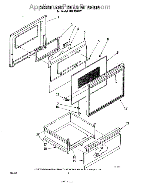 Parts for Whirlpool RFE350PW: 02 - Door And Drawer Parts