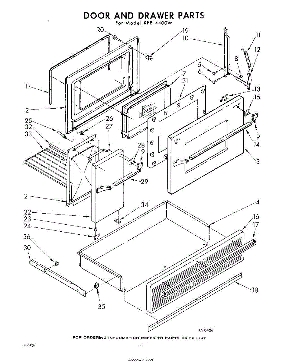 Parts for Whirlpool RFE4400W: 04 - Door And Drawer Parts