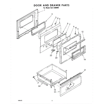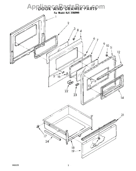 Parts for Whirlpool RJE3360W0: 02 - Door And Drawer Parts