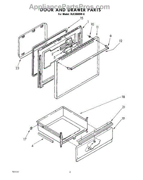 Parts for Whirlpool RJE3600W0: 02 - Door And Drawer Parts