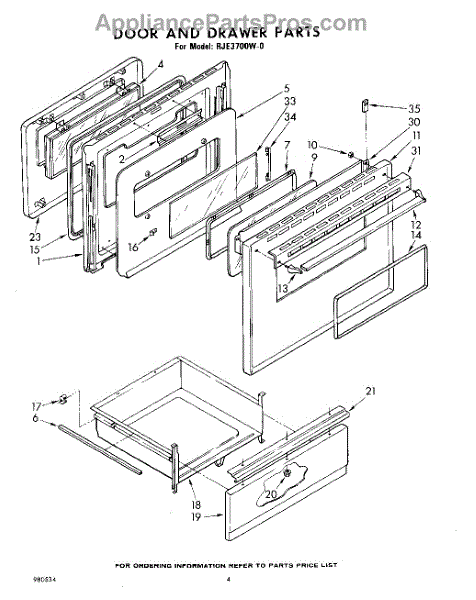 Parts for Whirlpool RJE3700W0: 04 - Door And Drawer Parts