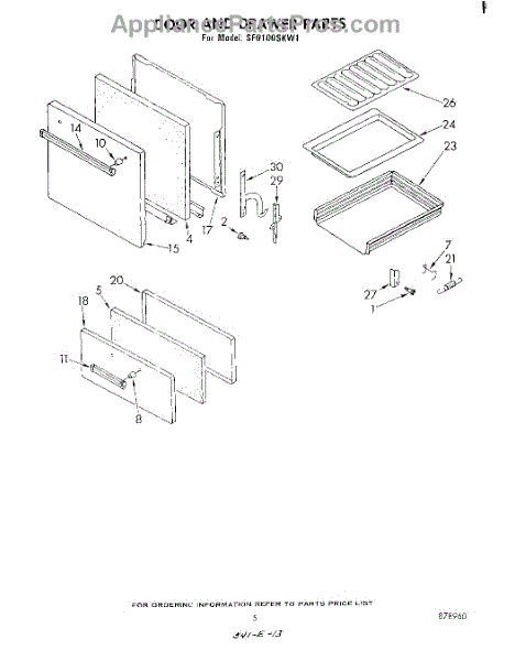 Parts for Whirlpool SF0100SKW1: 04 - Door And Drawer Parts