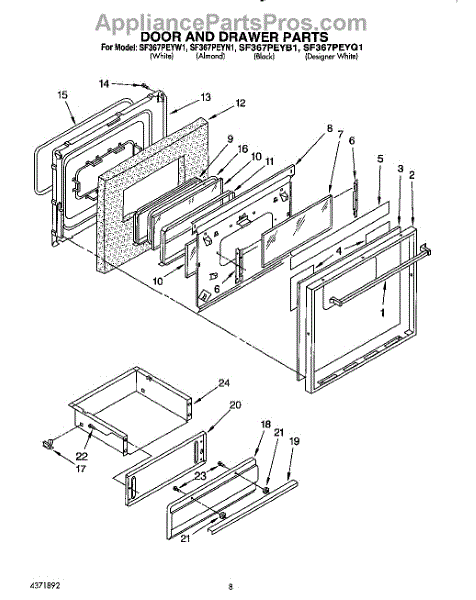 Parts for Whirlpool SF367PEYB1: 08 - Door And Drawer Parts