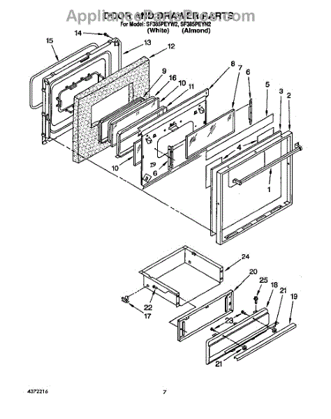 Parts for Whirlpool SF385PEYW2: 07 - Door And Drawer Parts