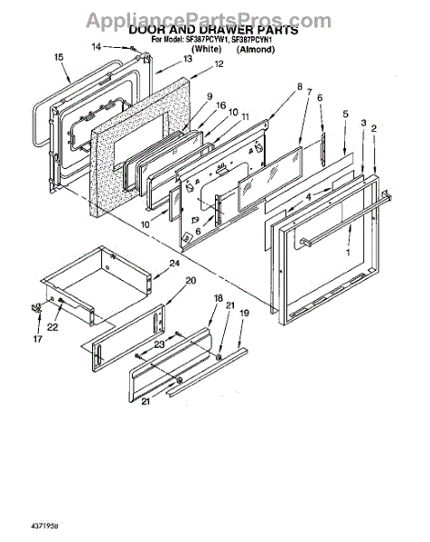 Parts for Whirlpool SF387PCYN1: 08 - Door And Drawer Parts