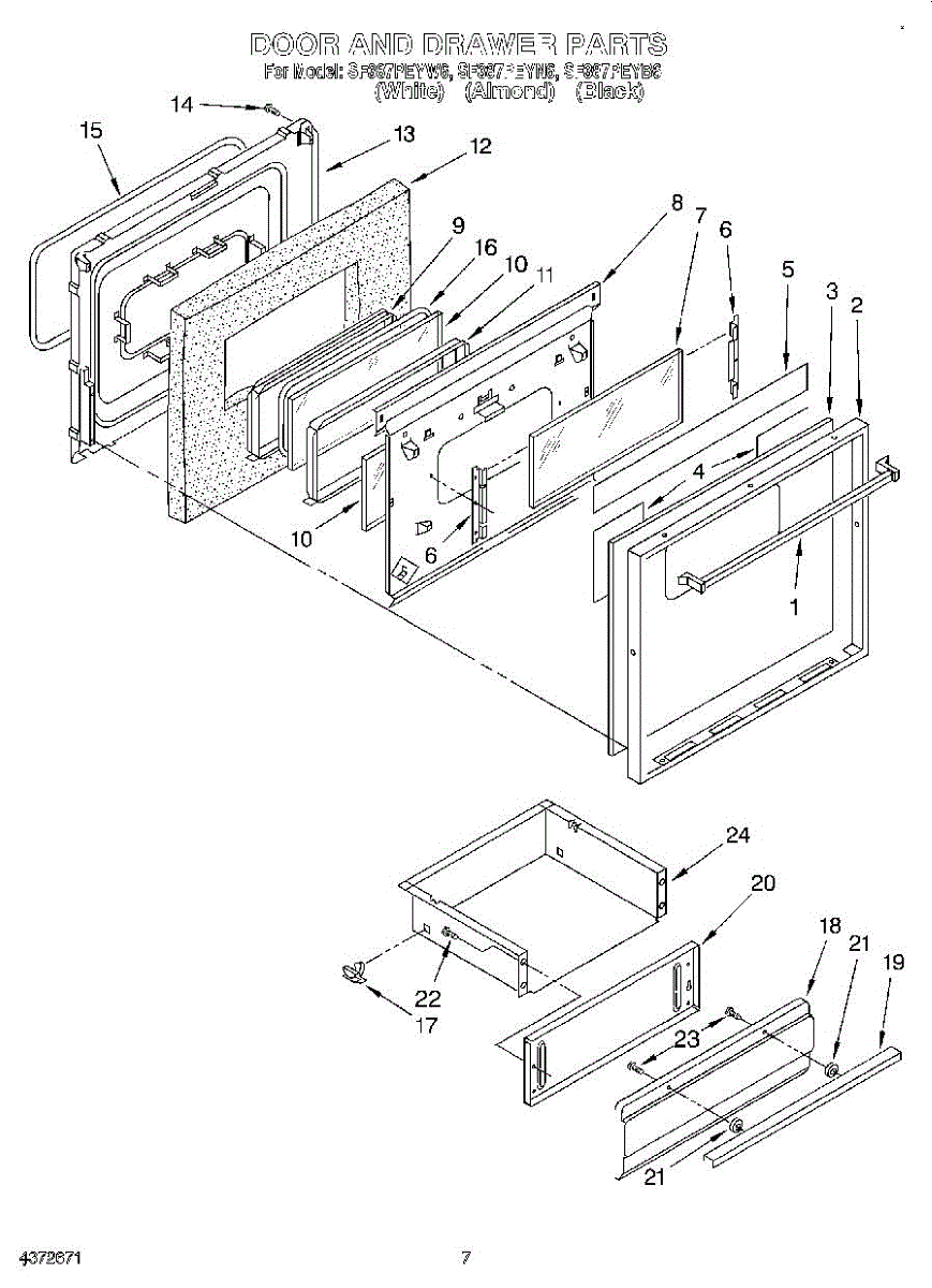 Parts for Whirlpool SF387PEYW6: 06 - Door & Drawer Parts