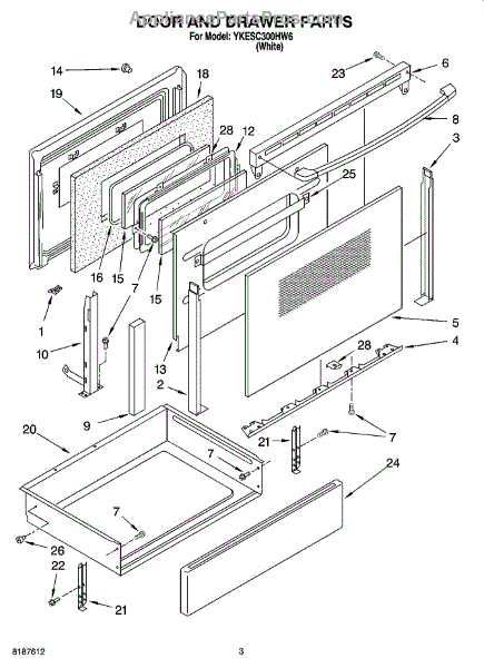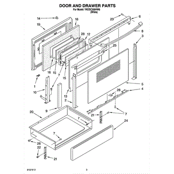 Parts for Whirlpool YKESC300HW6: 03 - Door And Drawer Parts
