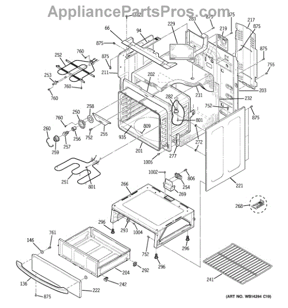 The Oven Drawer Glide is an OEM replacement part for GE electric and gas ranges. It functions as the suspension mechanism facilitating smooth extension and retraction of range drawer shelves. Causes of a bad drawer glide can include wear from years of use, damage from heavy pots or pans straining the glide, or loose mounting fixtures failing to securely support shelf weight. Symptoms of a bad drawer glide include: