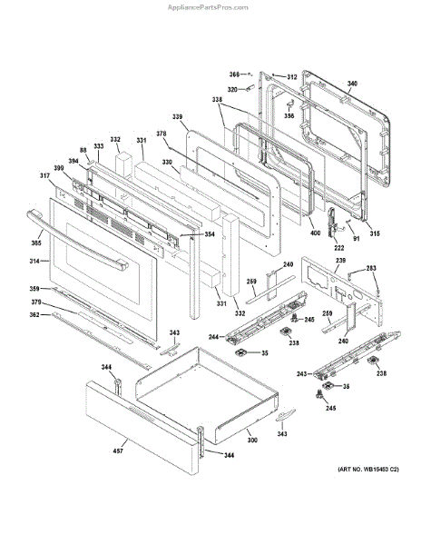 The Oven Drawer Glide is an OEM replacement part for GE electric and gas ranges. It functions as the suspension mechanism facilitating smooth extension and retraction of range drawer shelves. Causes of a bad drawer glide can include wear from years of use, damage from heavy pots or pans straining the glide, or loose mounting fixtures failing to securely support shelf weight. Symptoms of a bad drawer glide include: