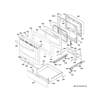 The Glass Door Assembly is an OEM part compatible with GE gas ranges. It encloses the cooking cavity through a pane of transparent tempered glass allowing for visibility.