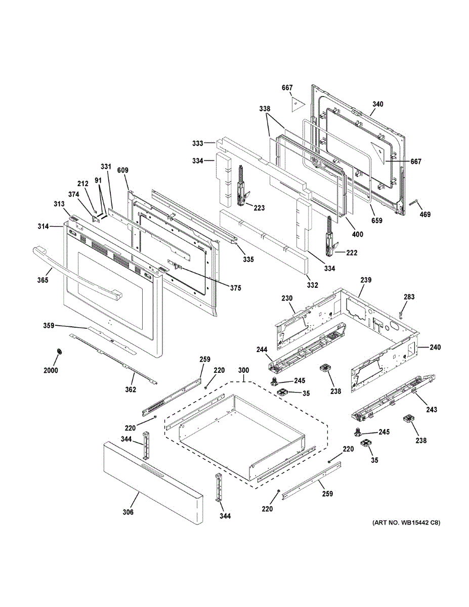 Range drawer body assembly forms the main structure of your storage or warming drawer. Replace if cracked, damaged, or missing to restore proper drawer function.