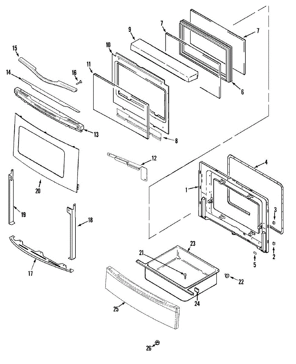 Size: 20 5/8 inches x 13 1/8 inches. For the glass measuring 22 3/8 inches x 14 inches order 74004857 Causes of a bad oven inner door glass can include small cracks or chips developing from regular door openings/closings, or microscopic defects that enlarge under repeated thermal cycling. Damage from accidental impacts is also possible. Symptoms of a bad Oven Inner Door Glass include: