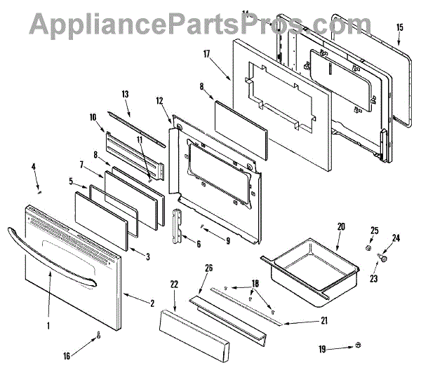 The Oven Door Panel Screw is an OEM replacement part for Whirlpool ovens and ranges. It is a component used to fasten the outer panel to the interior metal door frame. Causes of a bad oven door panel screw can include normal wear from repeated opening and closing of the door, damage such as stripped threads from overtightening, or corrosion over time inhibiting its fastening function. Symptoms of a bad oven door panel screw include: