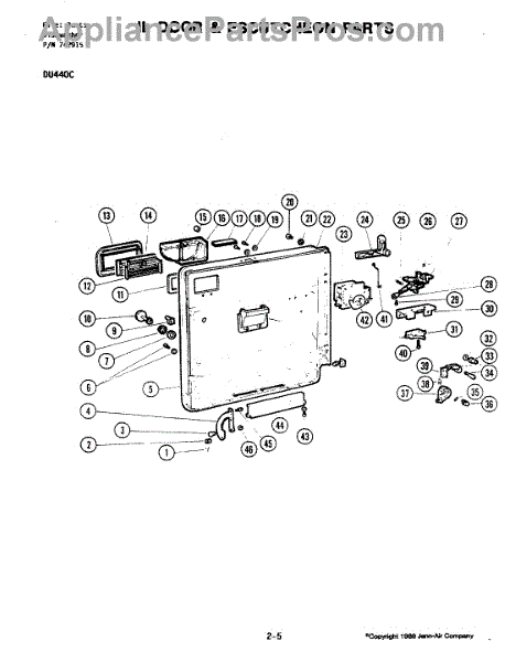 This factory screw secures appliance components to their mounting points. Replace missing, worn, or stripped hardware to restore a tight fit, proper alignment, and quieter operation across the affected assembly.