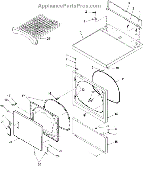 Parts for Amana ALG956EAC-PALG956EAC: Door And Front, Access, And Top Panels Parts