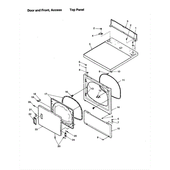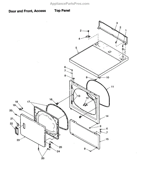 Parts for Amana DLE330RA-PDLE330RA: Door And Front, Access / Top Panel Parts