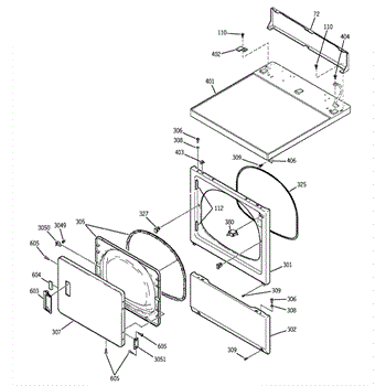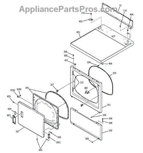 Parts for Ge DDSS475GA1WW: Door, Front, Access & Top Panel Parts