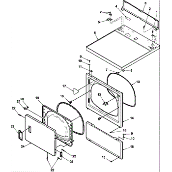 Parts for Speed Queen LES10AW-PLES10AW: Door And Front, Access, And Top Panels Parts