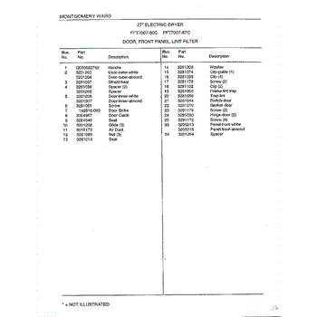 Parts for Frigidaire 7007-87C: Door, Front Panel, Lint Filter Page 2 Parts